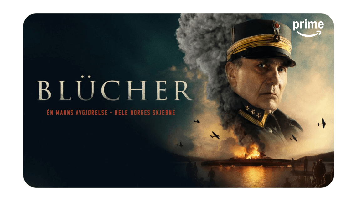 Nå kan du se historien om da Blücher ble senket utenfor Oscarsborg med Prime Video! Les alt om kinosuksessen her.