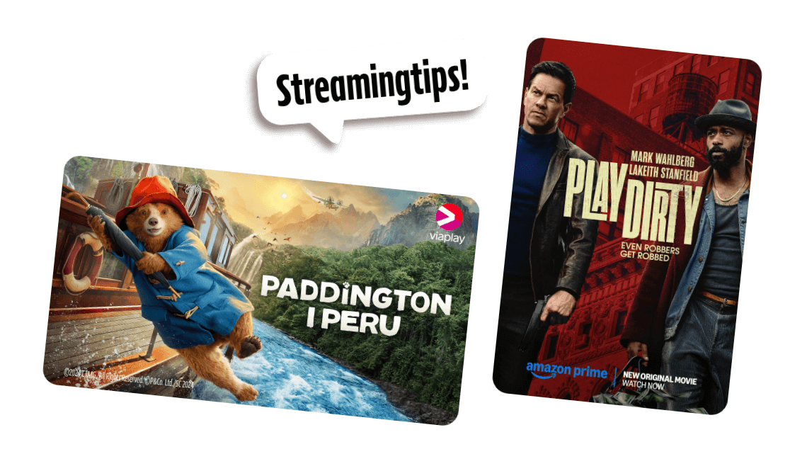 I Allente-appen har du tilgang til filmer fra de største produsentene! Hva med "Play Dirty", en heseblesende skurk-film med Mark Wahlberg, fra Prime og favoritten "Paddington i Peru" som du finner hos Viaplay.