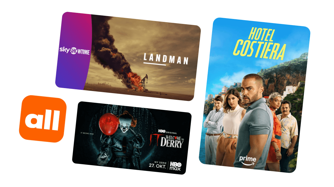 Det finnes mange strømmetjenester, som f.eks. Netflix, Max, SkyShowtime og TV 2 Play. Allente er en streamingdistributør, der du kan streame tradisjonelle kanaler, og samle streamingtjenester som Max, TV 2 Play, Viaplay og SkyShowtime i ett og samme abonnement. Allente har ofte lavere priser på streamingtjenester enn hva du kan få direkte hos leverandøren.